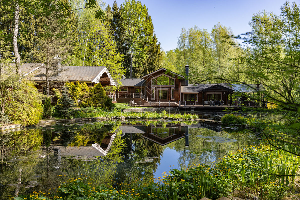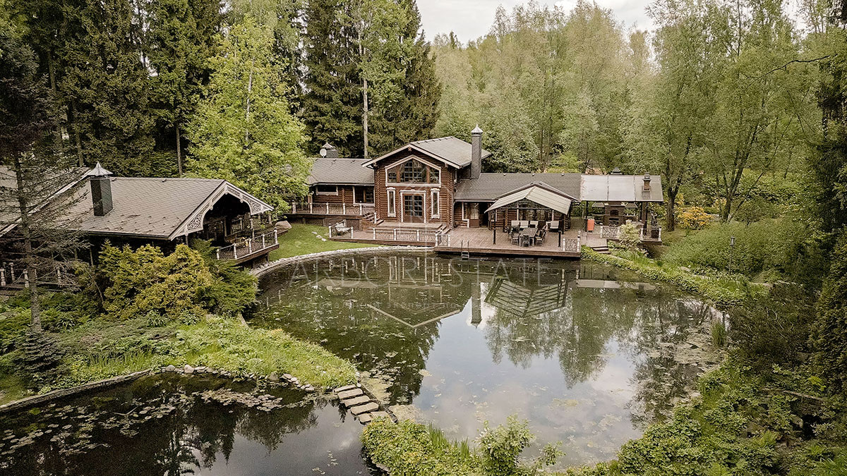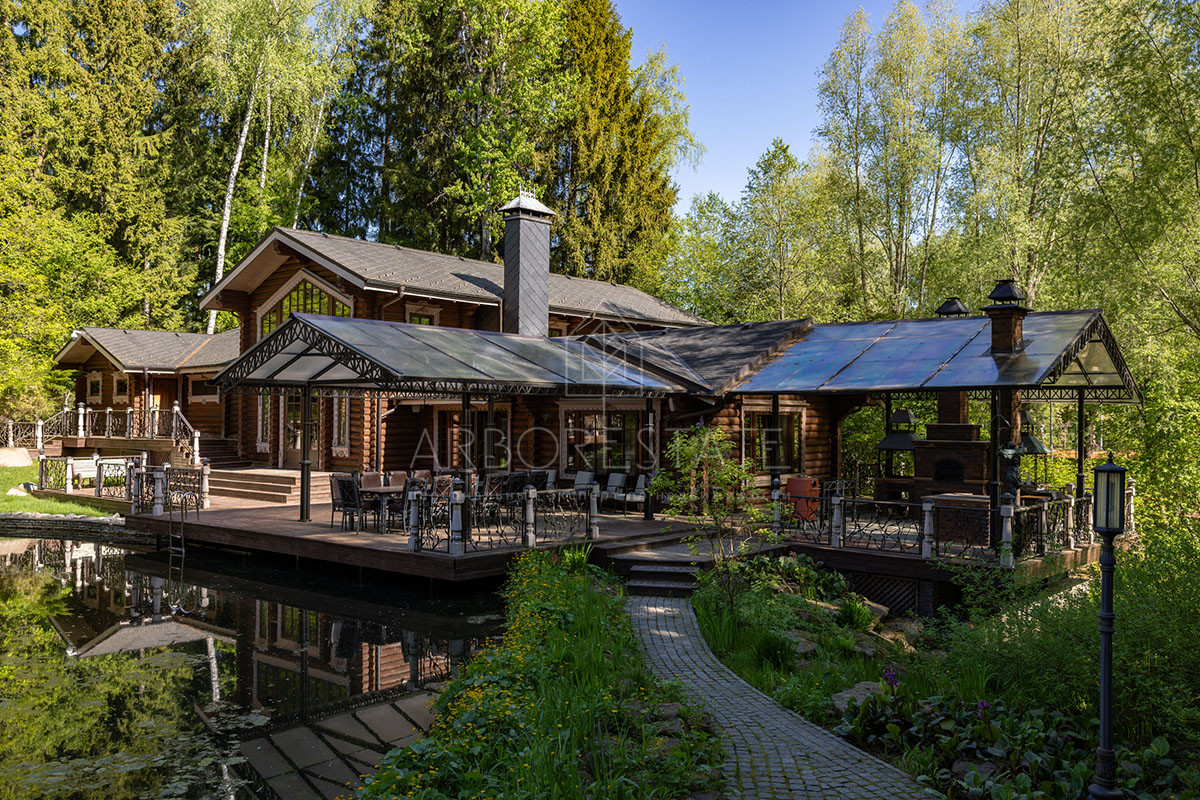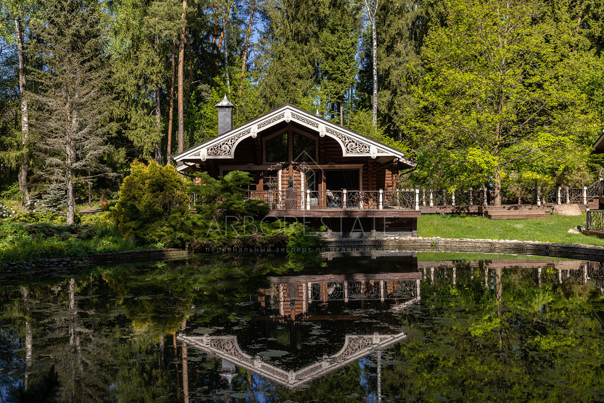 Помимо основного дома на участке расположены гостевой дом, гараж и банный комплекс на берегу озера.