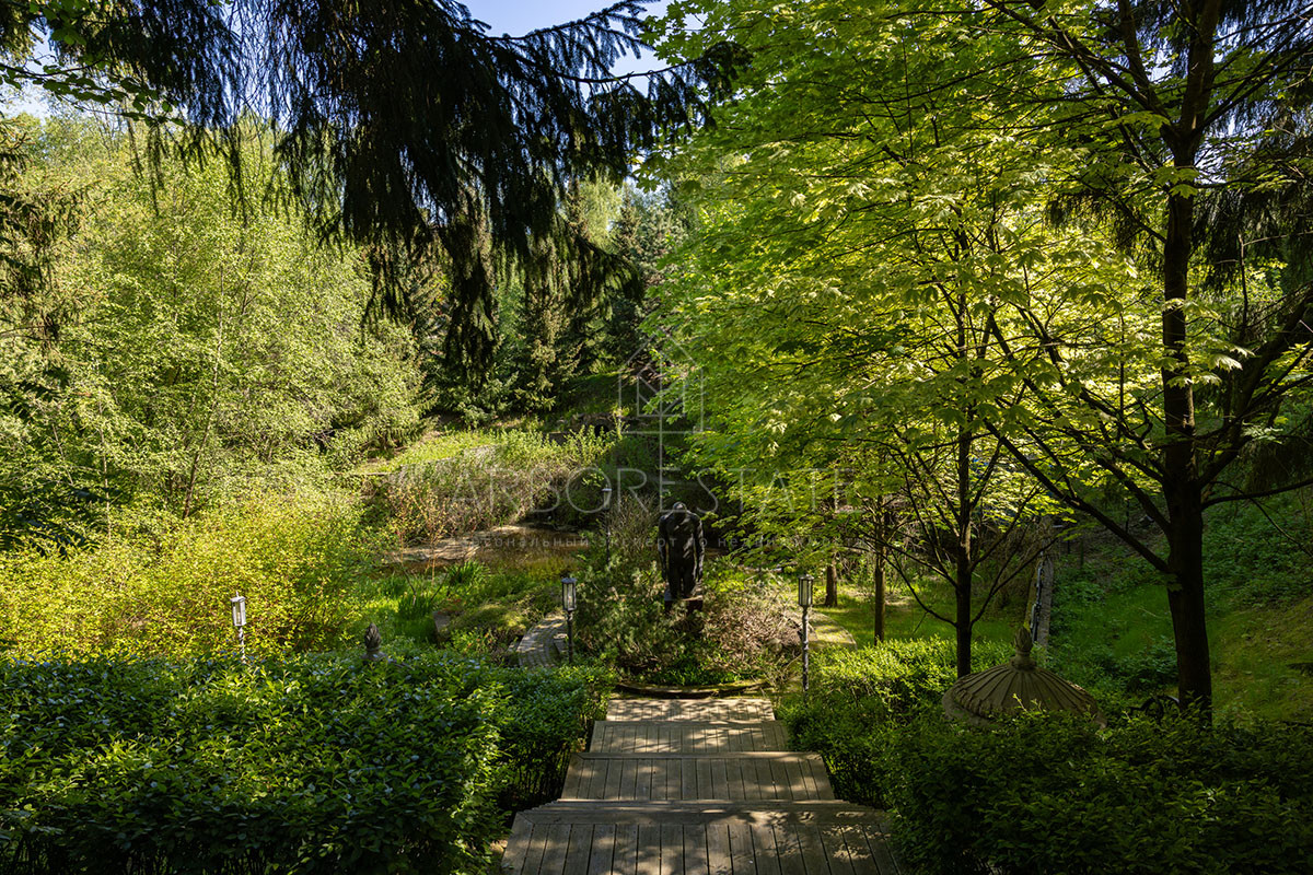 Участок площадью 1, 6 га утопает в зелени вековых деревьев и даёт ощущение полной приватности.
