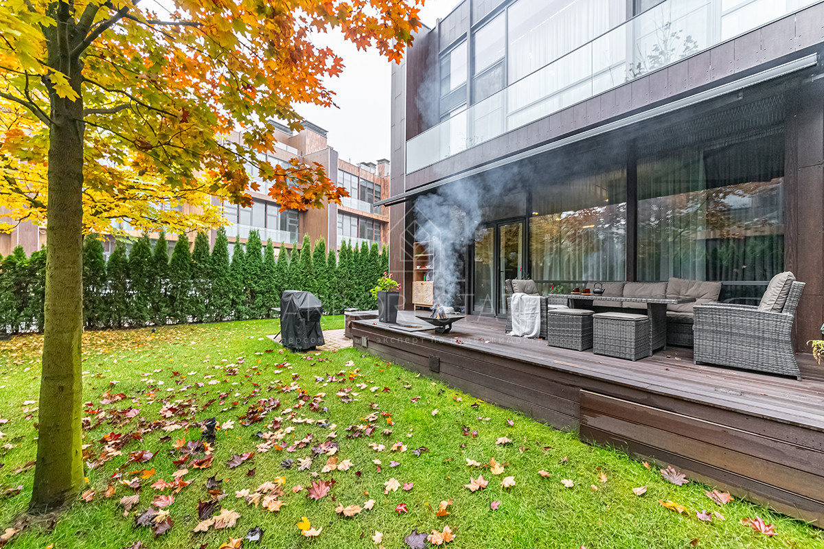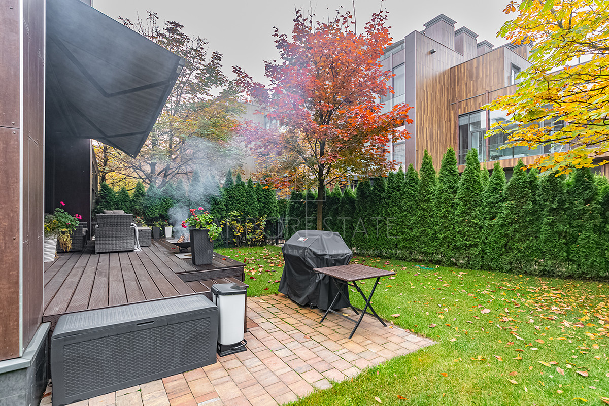 Уютный участок 2,8 сотки расположенный с торцевой стороны строения, что даё ему уникальный, для территории таунхауса, простор.