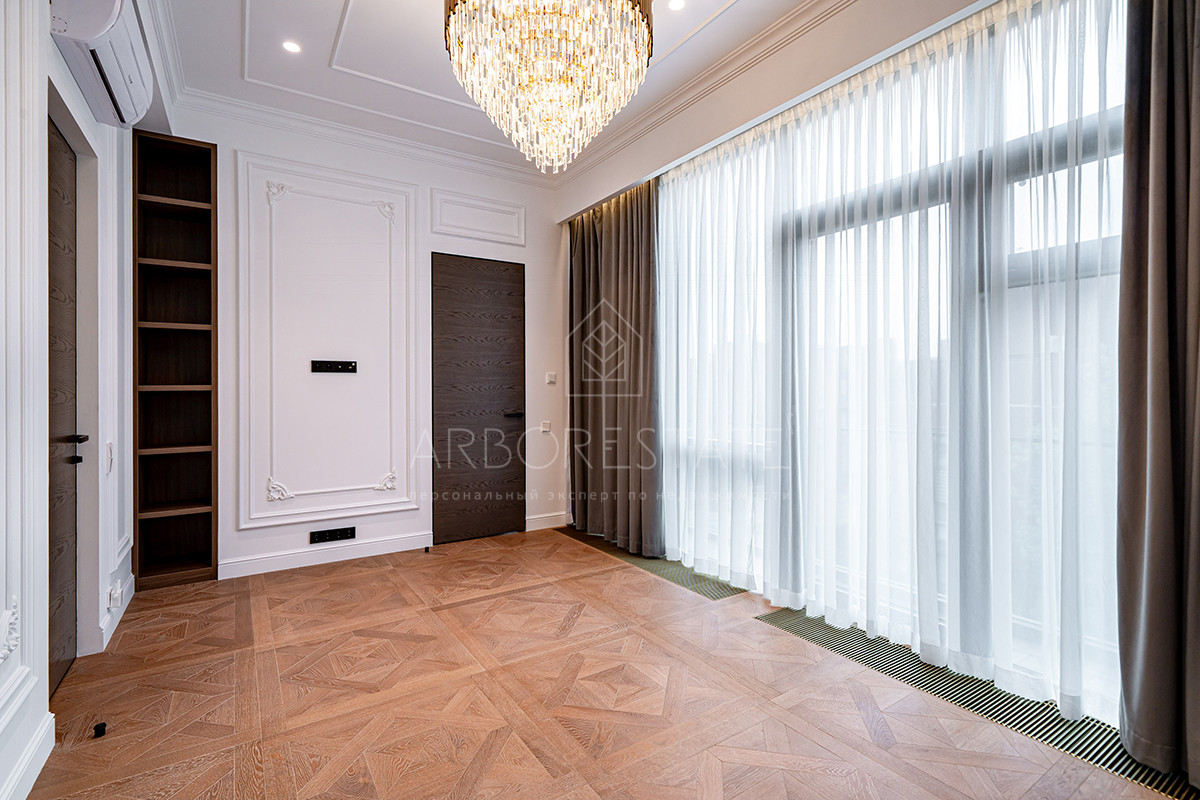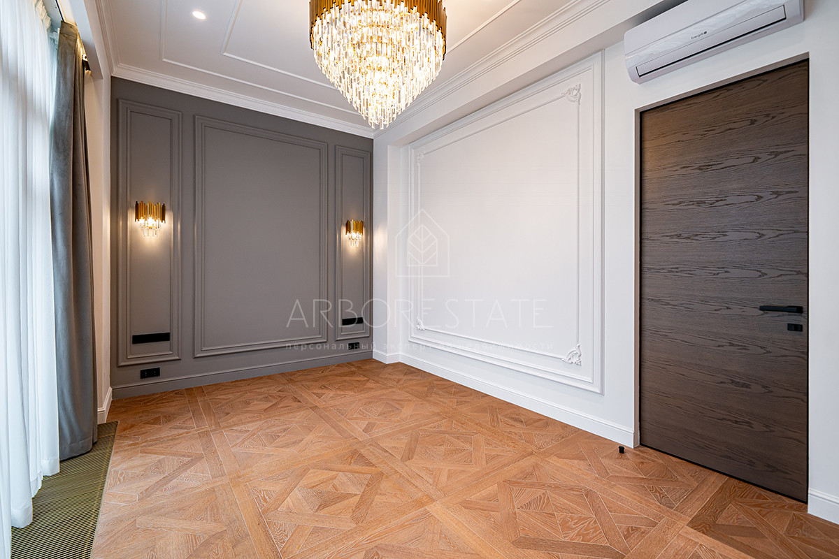 Напольное покрытие - паркетная доска, действующий мраморный камин в гостиной, смонтирована система кондиционирования воздуха.