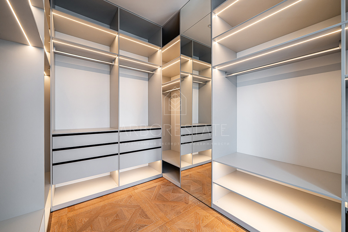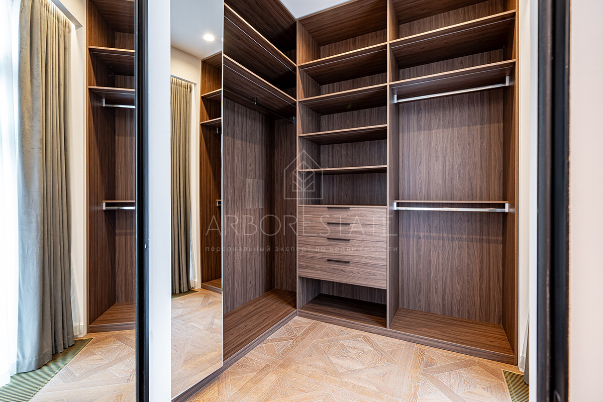 Отличная функциональная планировка (мастер спальня с своим гардеробом и санузлом, ещё 3 спальни из них 2 с гардеробными, 3 санузла).