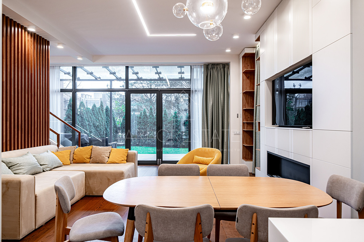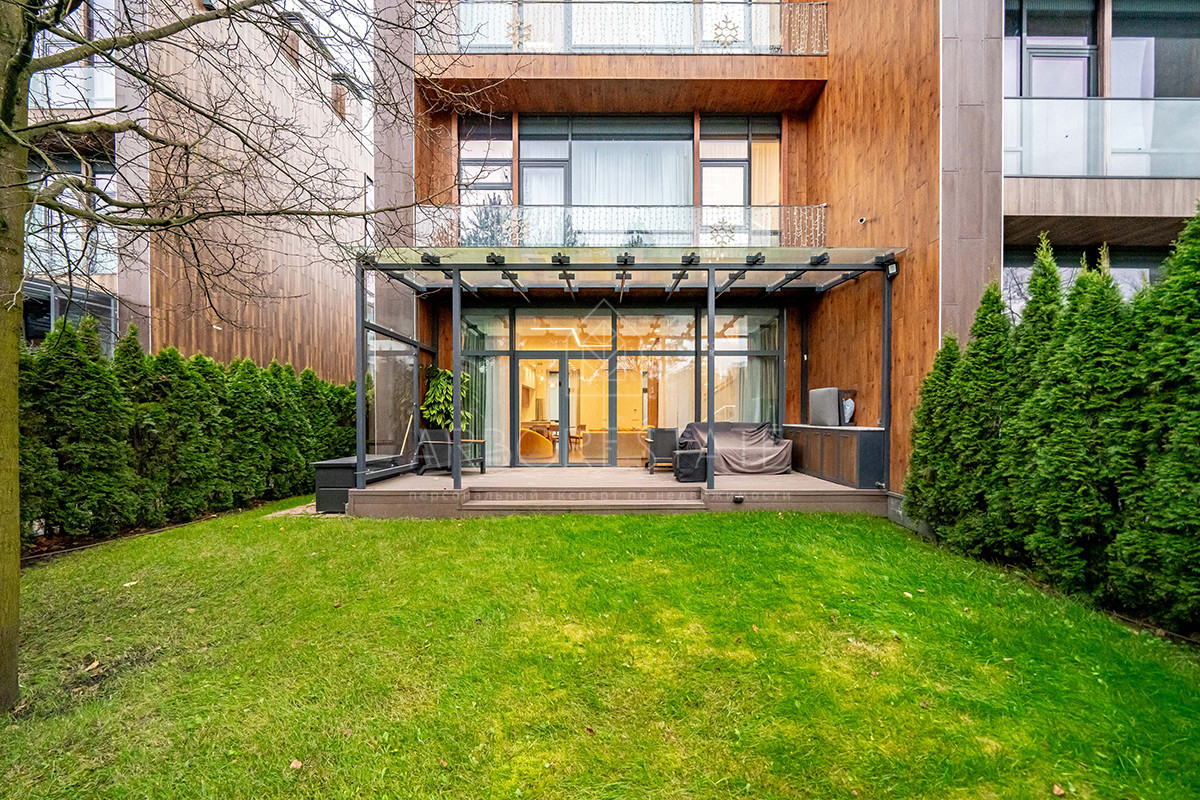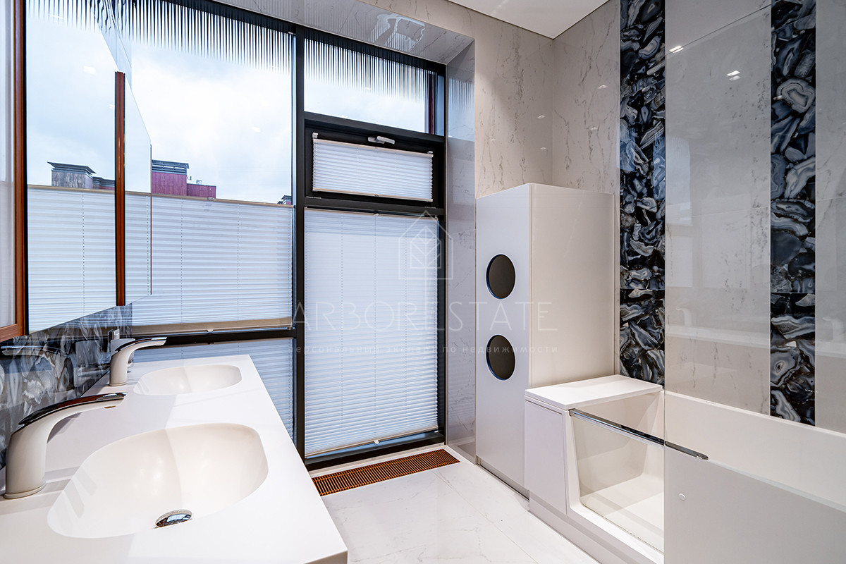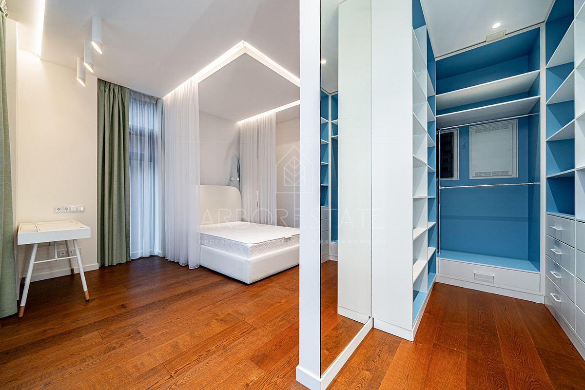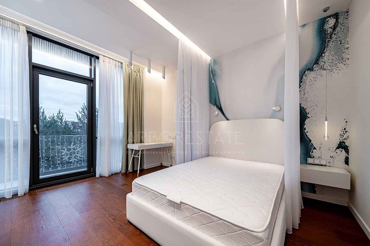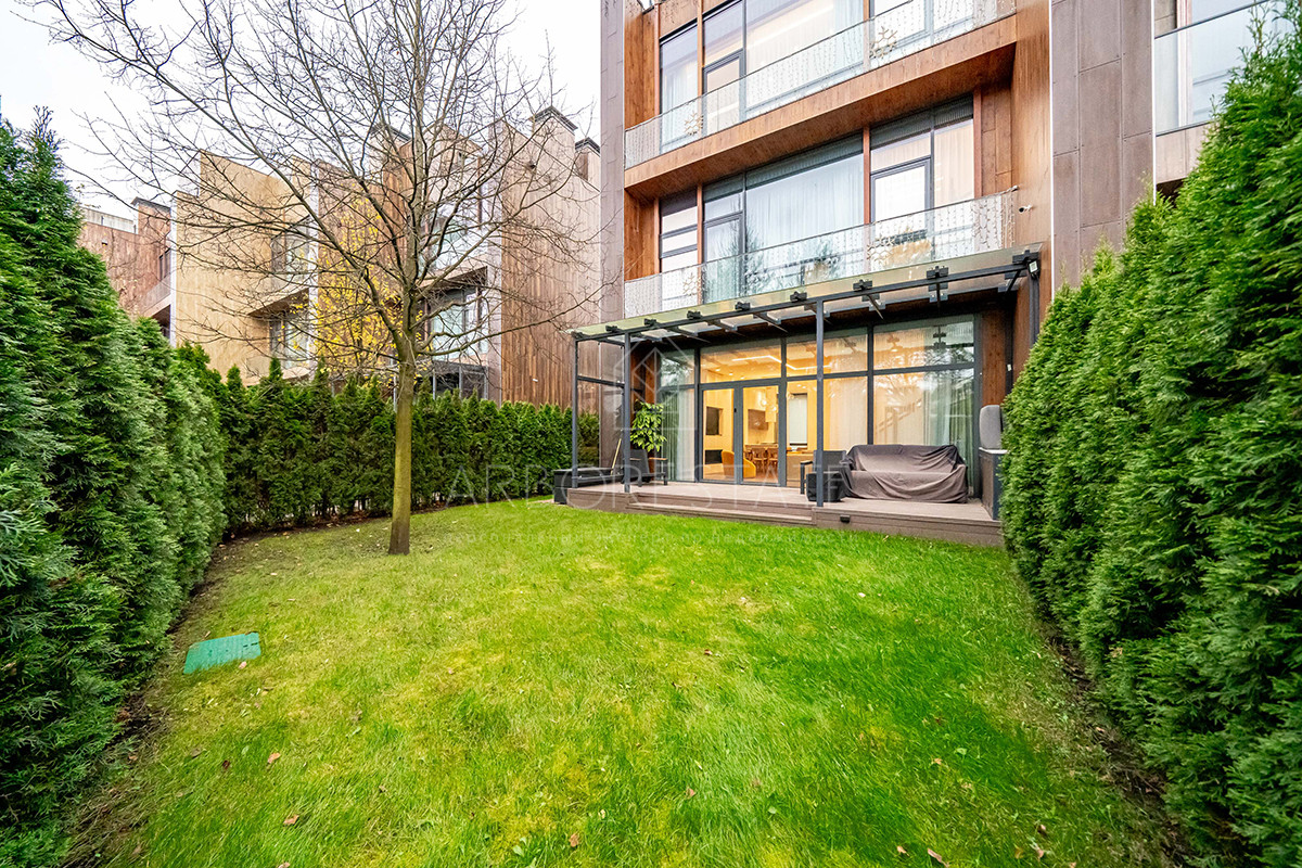 Планировка: просторная гостиная, кухня-столовая с выходом в приватную часть участка, 4 спальных комнаты (мастер спальня, 2 спальни с гардеробной комнатой, спальня с санузлом). Установлен гидравлический лифт. Таунхаус оснащен премиальной встроенной техникой. Отделка выполнена из дорогостоящих высококачественных материалов.