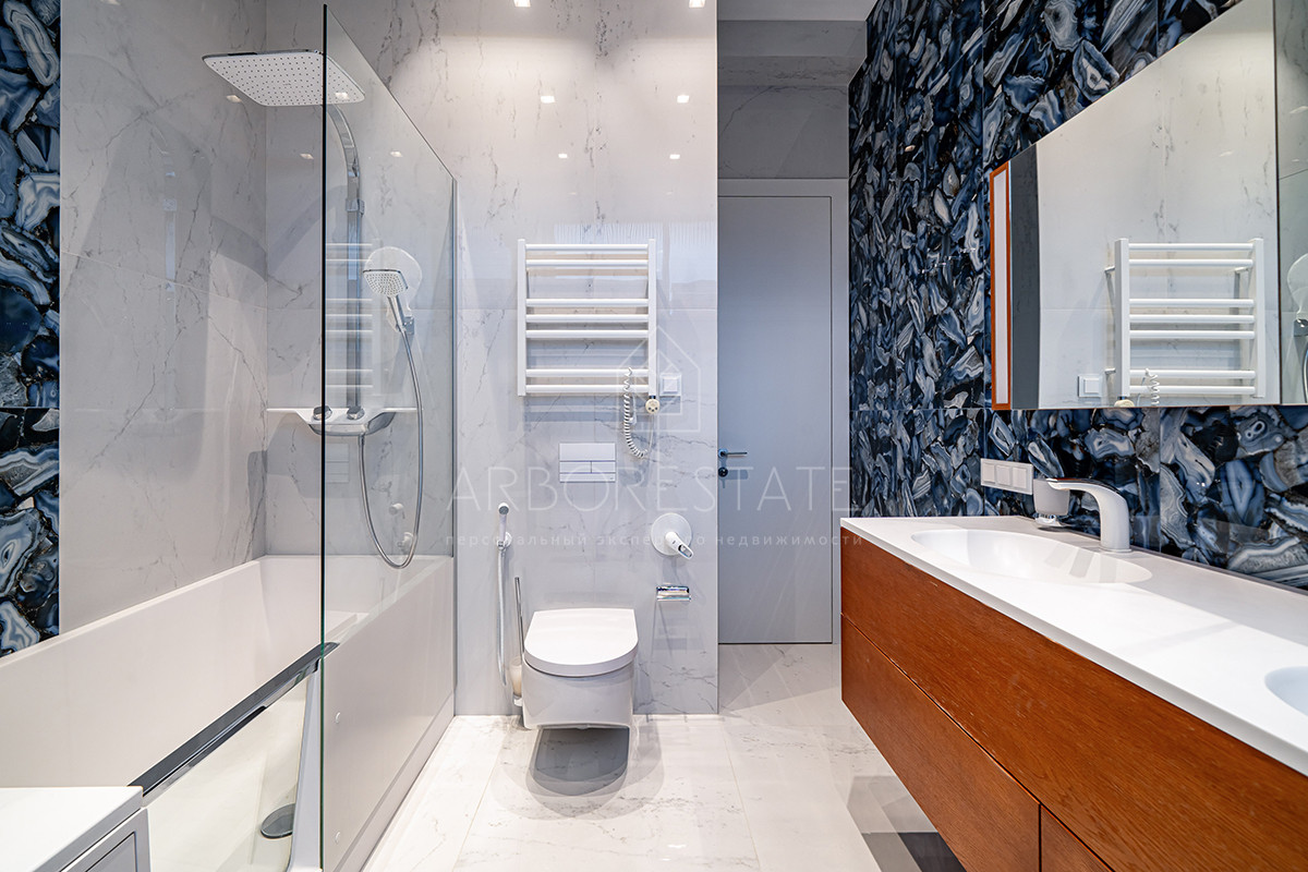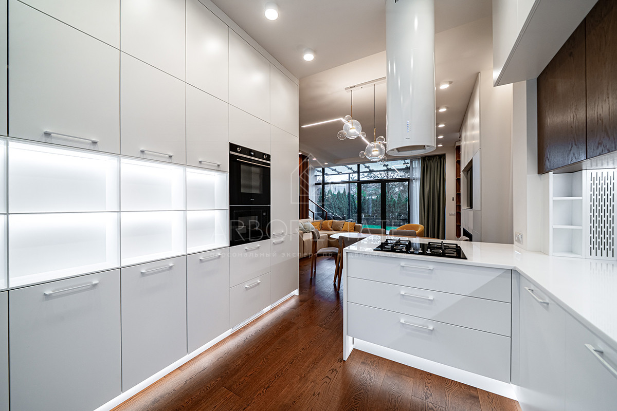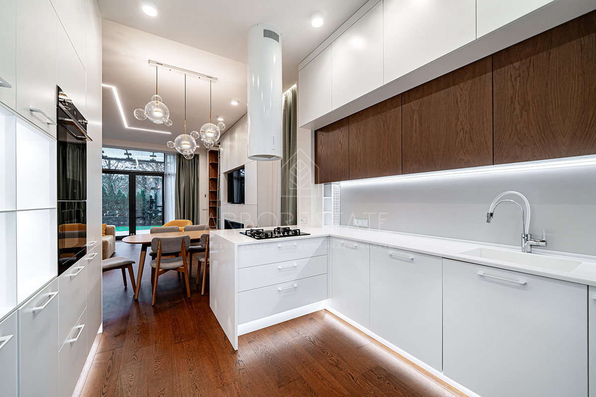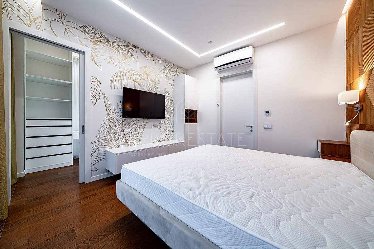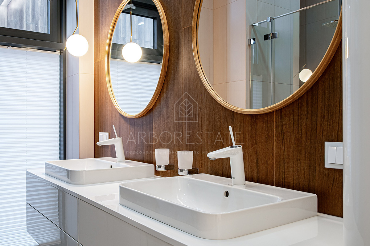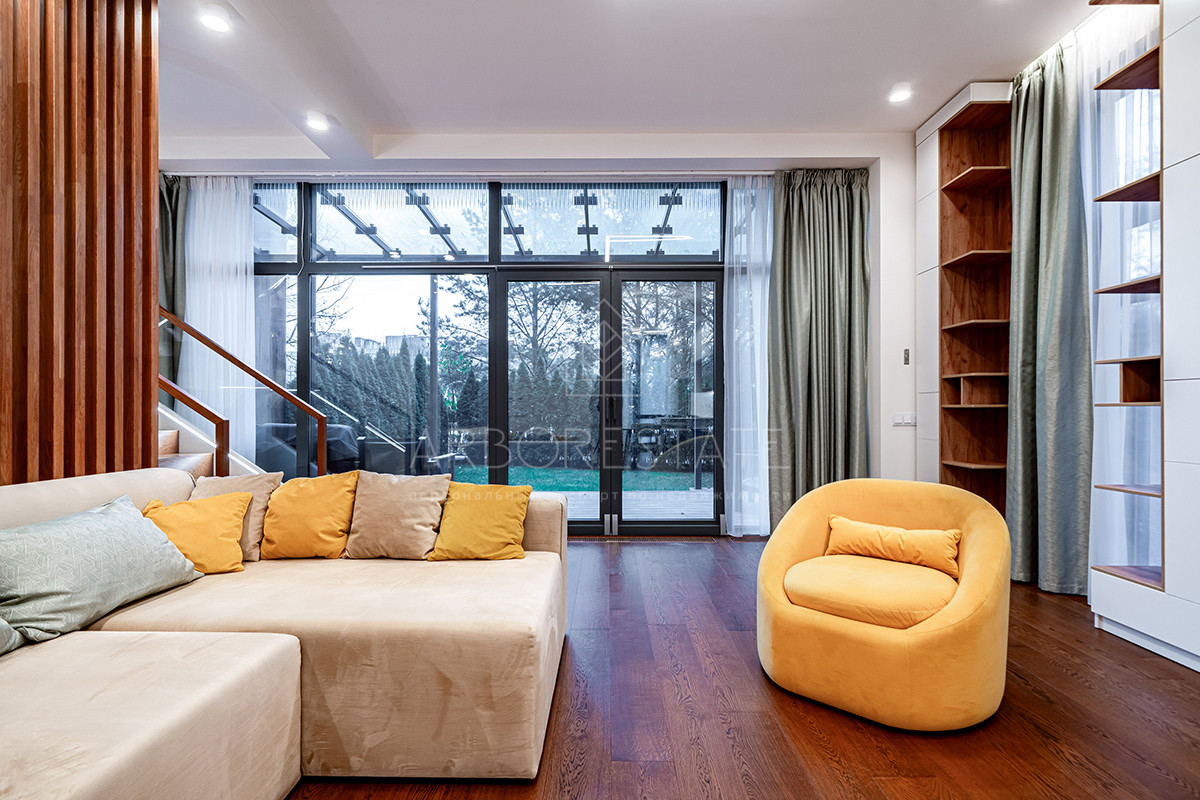 Планировка: просторная гостиная, кухня-столовая с выходом в приватную часть участка, 4 спальных комнаты (мастер спальня, 2 спальни с гардеробной комнатой, спальня с санузлом). Установлен гидравлический лифт. Таунхаус оснащен премиальной встроенной техникой. Отделка выполнена из дорогостоящих высококачественных материалов.