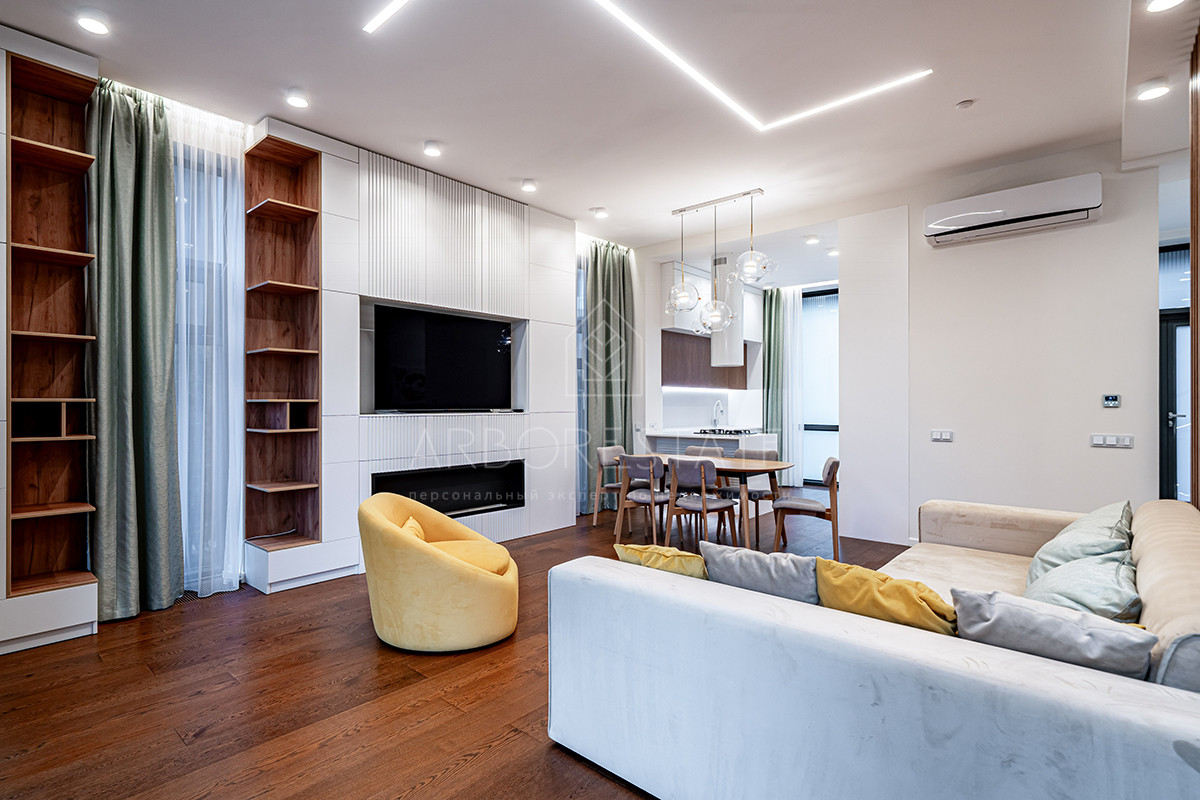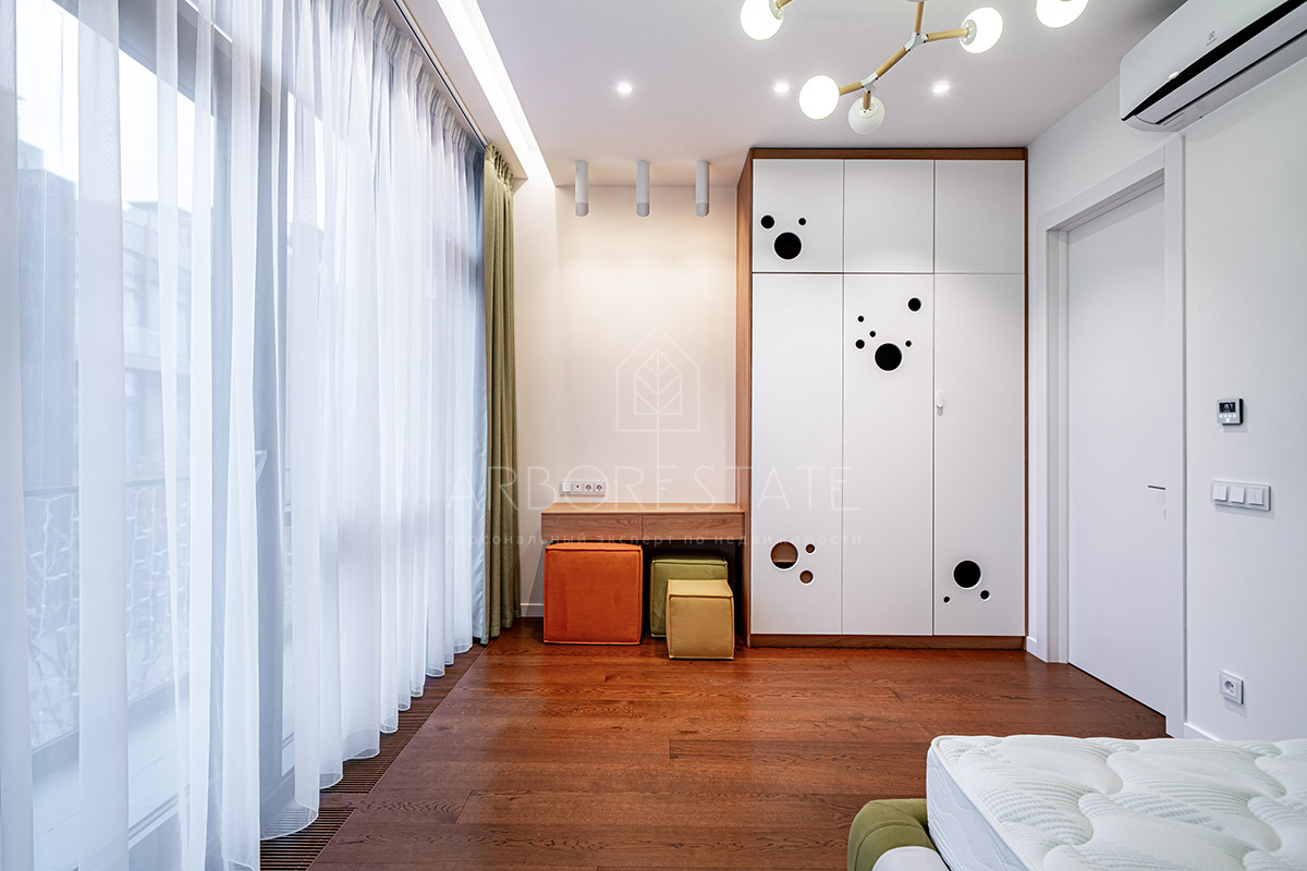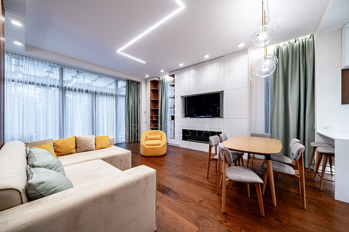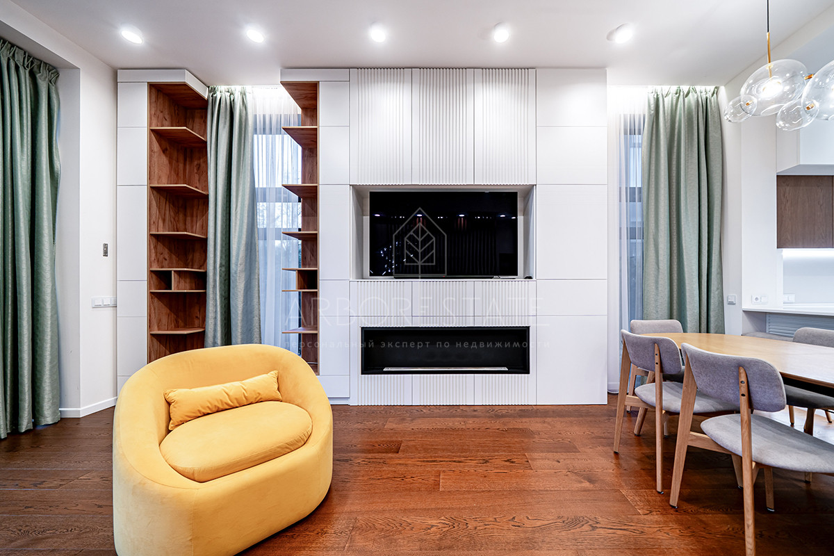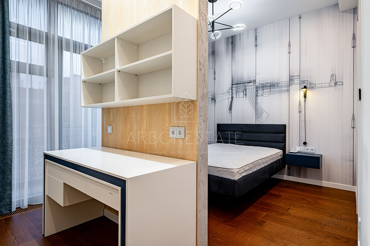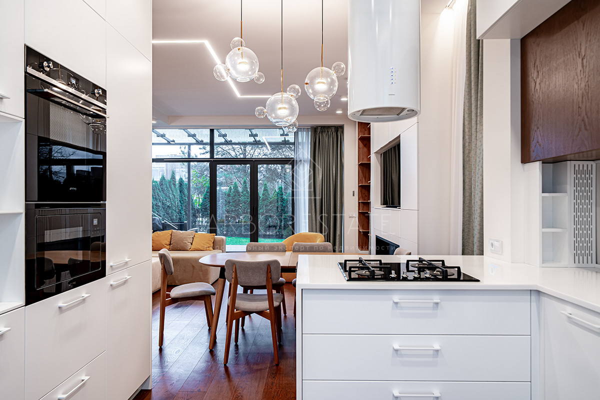 Планировка: просторная гостиная, кухня-столовая с выходом в приватную часть участка, 4 спальных комнаты (мастер спальня, 2 спальни с гардеробной комнатой, спальня с санузлом). Установлен гидравлический лифт. Таунхаус оснащен премиальной встроенной техникой. Отделка выполнена из дорогостоящих высококачественных материалов.