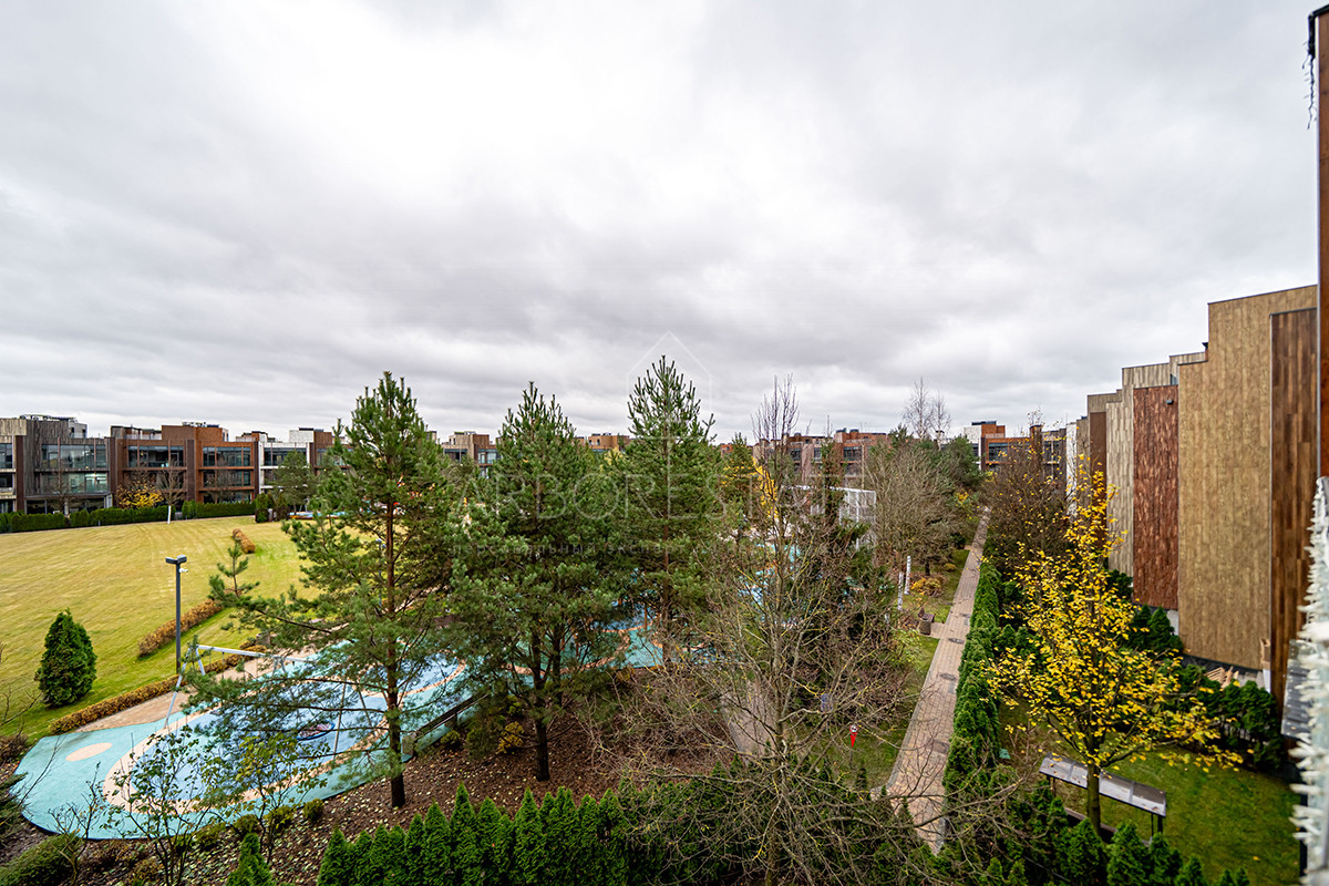 В посёлке собственная парковая зона с озером, пляжем, на территории несколько детских и игровых комплексов, спортивная площадка с трибуной для зрителей, облагороженная зелёная территория выполненная в стиле минимализма.