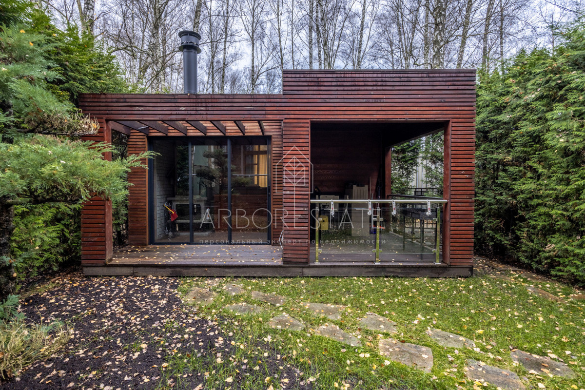 Таунхаус расположен на светлом приватном участке площадью 2,87 сотки с газоном, многолетними туями и уютной мангальной зоной, расположенной в отдельностоящем строении.