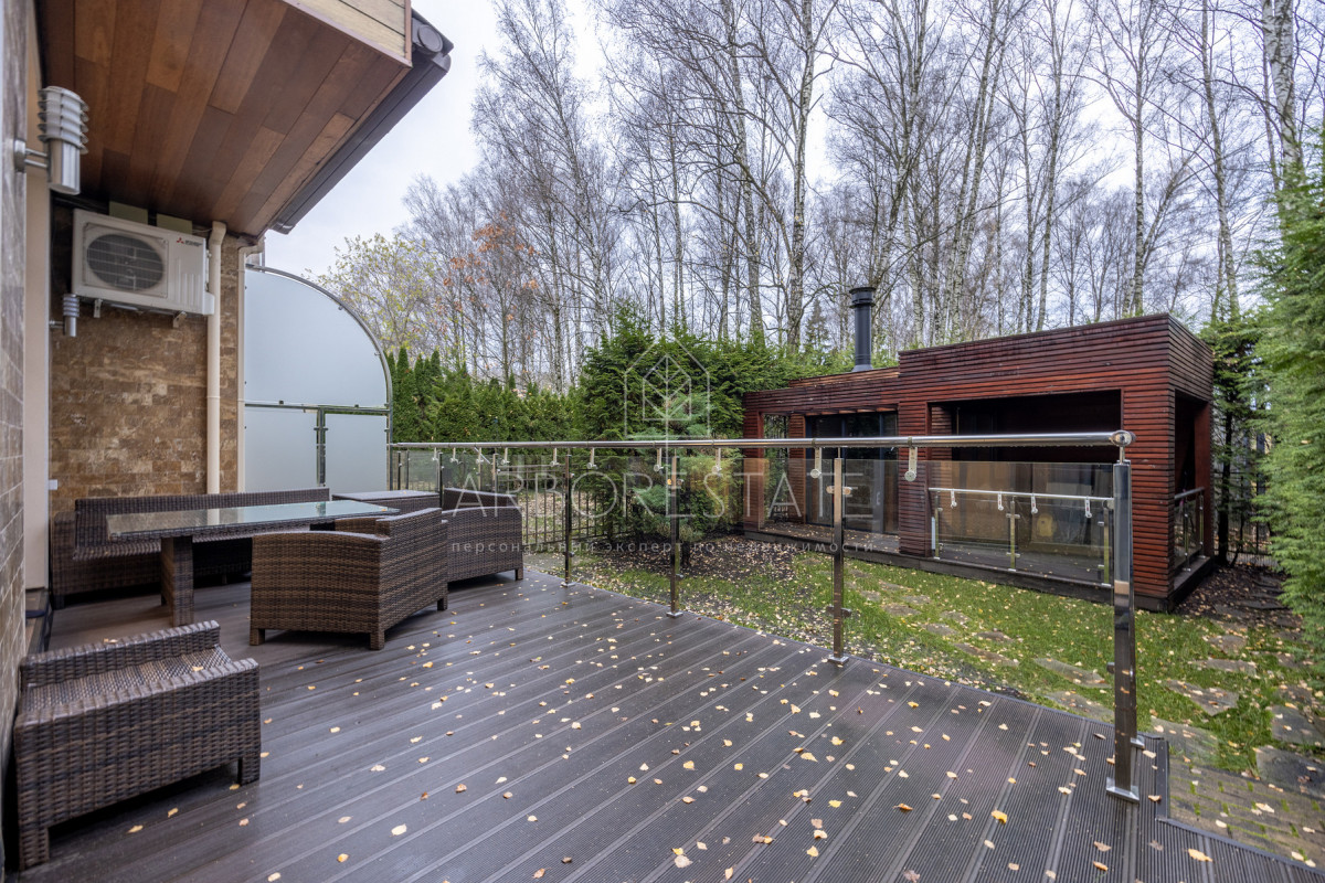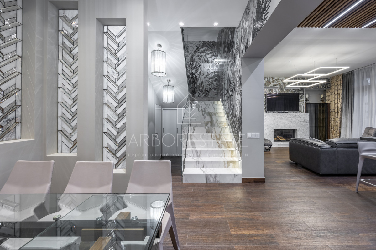 Мебель в доме зарубежного производства. Техника Kuppersbusch, Miele, Liebherr, установлены кондиционеры и приточно-вытяжная вентиляция. Соседи рядом живут.
